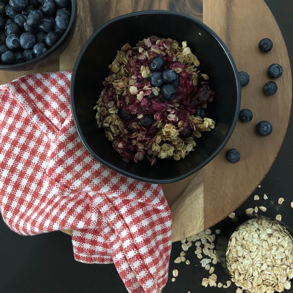 I took my family’s blackberry pie recipe and contorted it into a *somewhat* healthier version of baked oatmeal for any season. I used whole wheat flour, less sugar, and put tons of oats on top so I could justify calling it a baked oatmeal when I wanted to avoid the “you’re eating dessert for breakfast” guilt. (However, if we’re being real, this has less sugar in it than most breakfast cereals – and I’m not just talking about kid’s sugar cereals. Do me a favor and see how many cups of cereal you usually eat in one sitting and look at the TOTAL sugar. I can almost guarantee this crisp is less of a dessert than most cereals are.)